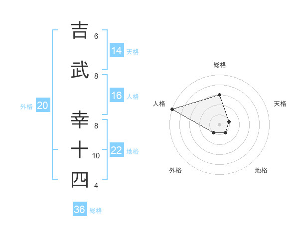 吉武 幸十四さんを姓名の画数から五運を鑑定