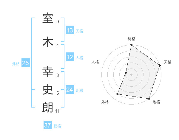 室木 幸史朗さんの総格は37画の5点!