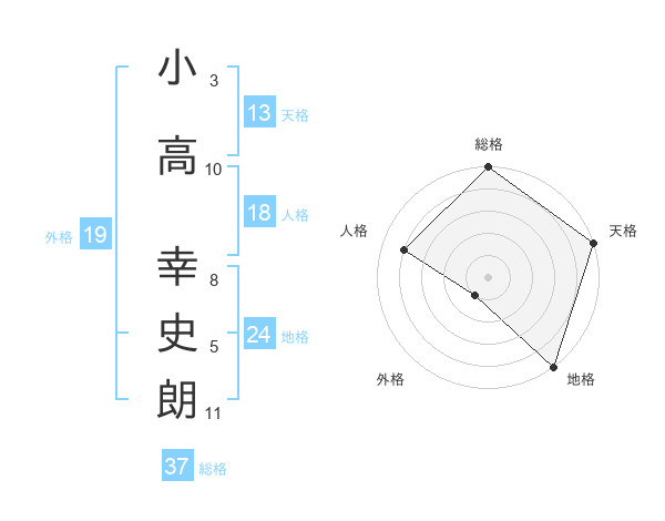 小高 幸史朗さんの総格は37画の5点!