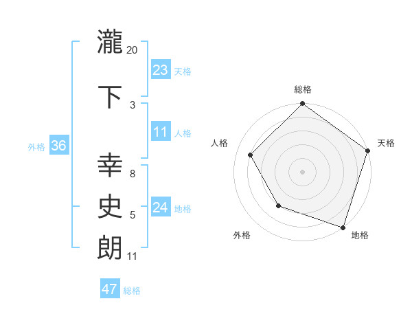 瀧下 幸史朗さんを姓名の画数から五運を鑑定