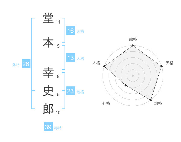 堂本 幸史郎さんの総格は39画の5点!
