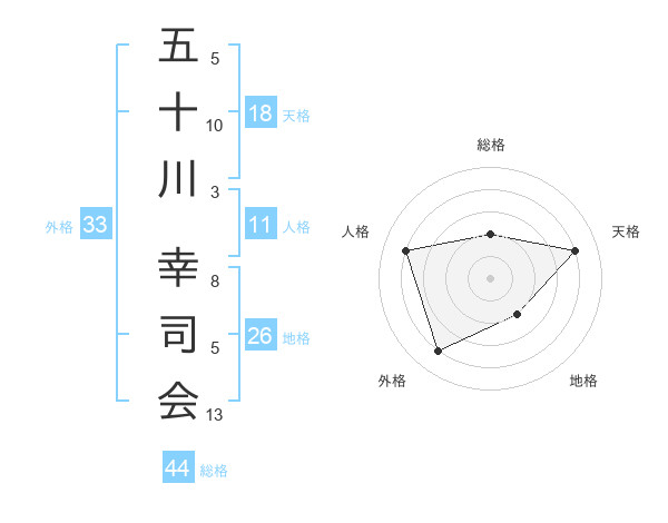 五十川 幸司会さんの総格は44画の2点!