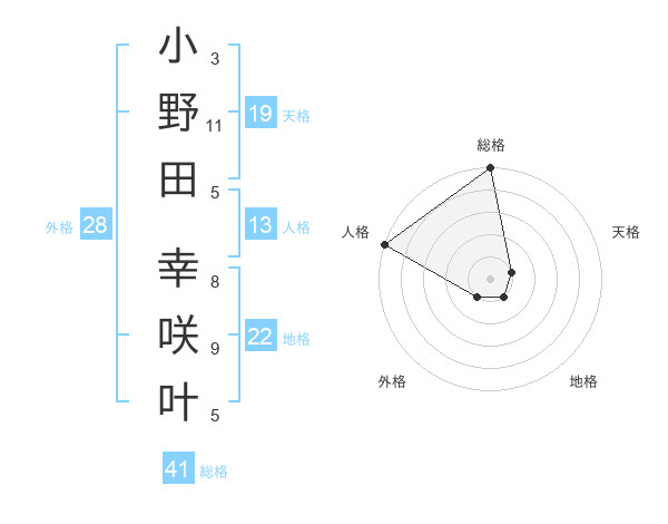 小野田 幸咲叶さんを姓名の画数から五運を鑑定