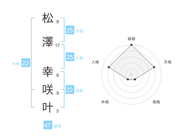 松澤 幸咲叶さんを姓名の画数から五運を鑑定