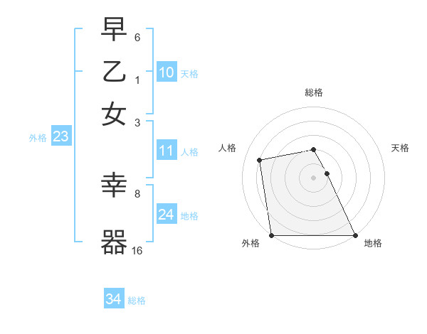 早乙女 幸器さんの総格は34画の2点!