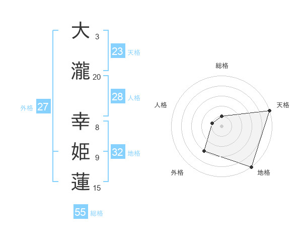 大瀧 幸姫蓮さんの天格は23画の5点!