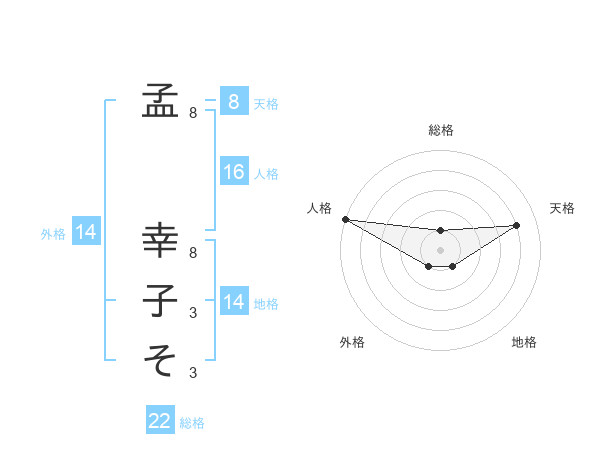 孟 幸子そさんを姓名の画数から五運を鑑定