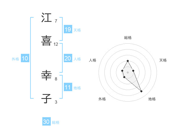 江喜 幸子さんを姓名の画数から五運を鑑定
