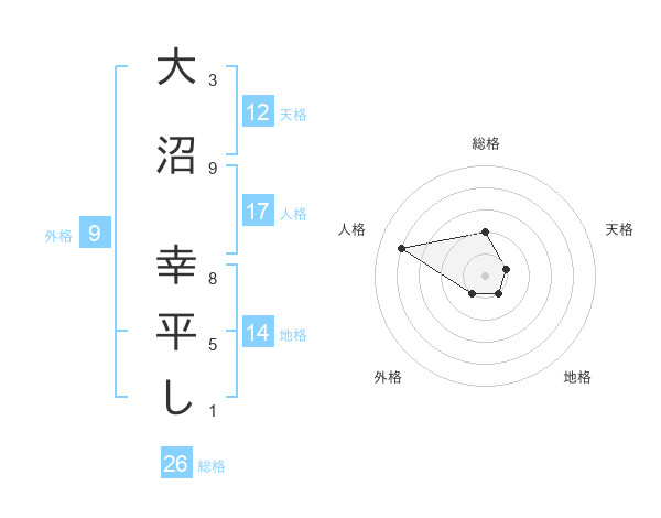大沼 幸平しさんを姓名の画数から五運を鑑定