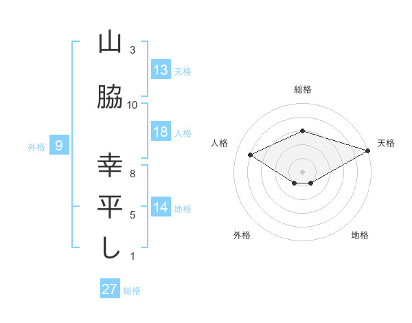 山脇 幸平しさんを姓名の画数から五運を鑑定