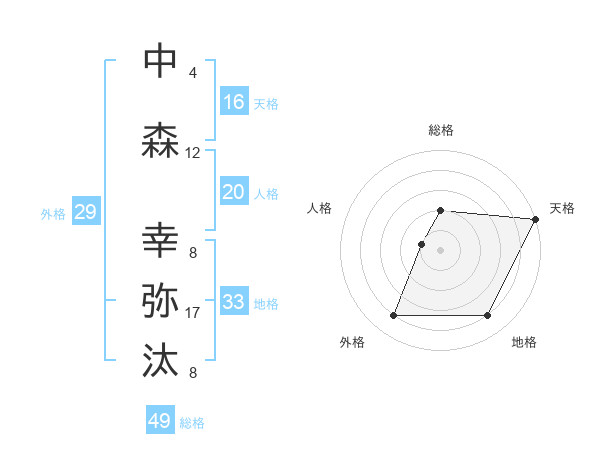 中森 幸弥汰さんを姓名の画数から五運を鑑定