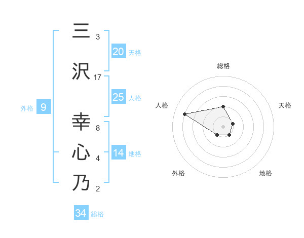 三沢 幸心乃さんの総格は34画の2点!