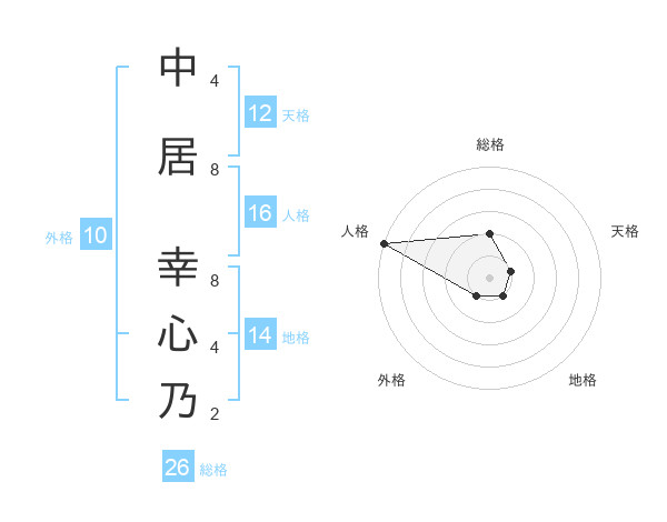 中居 幸心乃さんを姓名の画数から五運を鑑定