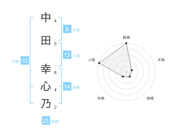 中田 幸心乃さんを姓名の画数から五運を鑑定
