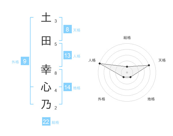 土田 幸心乃さんを姓名の画数から五運を鑑定
