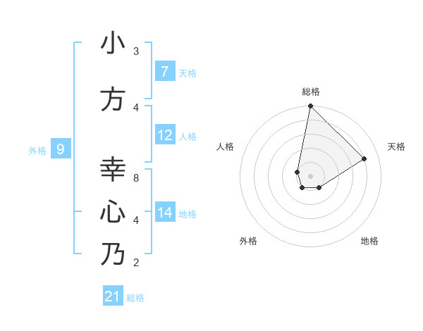 小方 幸心乃さんの総格は21画の5点