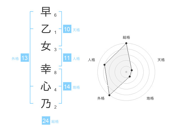 早乙女 幸心乃さんを姓名の画数から五運を鑑定