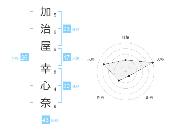 加治屋 幸心奈さんを姓名の画数から五運を鑑定
