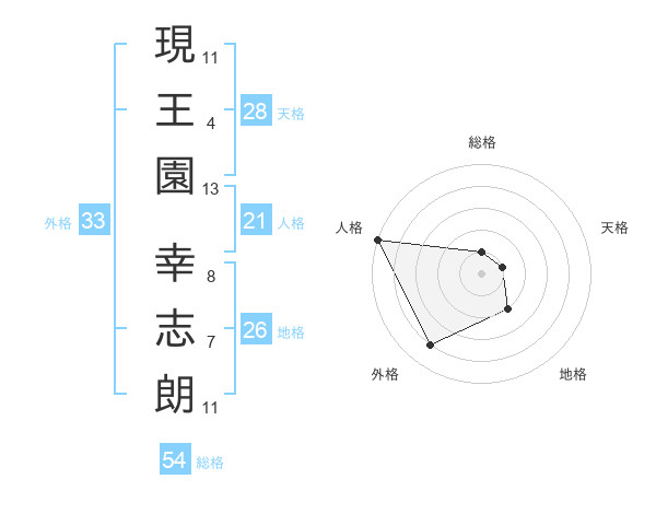 現王園 幸志朗さんを姓名の画数から五運を鑑定