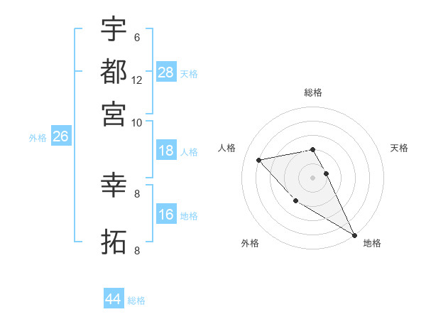 宇都宮 幸拓さんを姓名の画数から五運を鑑定