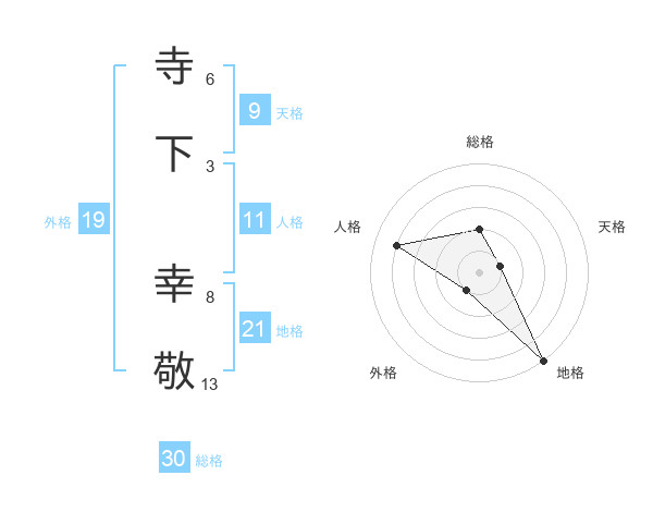 寺下 幸敬さんの地格は21画の5点!