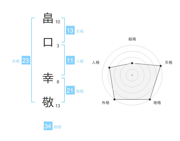 畠口 幸敬さんを姓名の画数から五運を鑑定