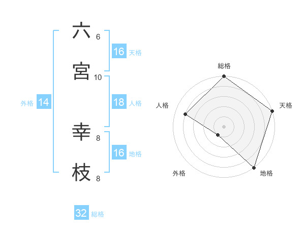 六宮 幸枝さんの総格は32画の5点!