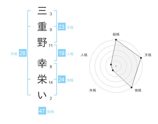 三重野 幸栄いさんの総格は47画の5点!