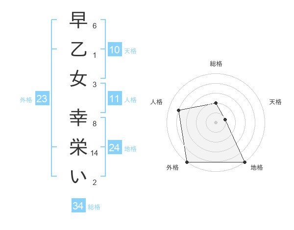 早乙女 幸栄いさんを姓名の画数から五運を鑑定