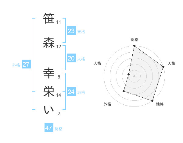 笹森 幸栄いさんの総格は47画の5点