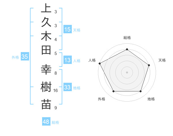 上久木田 幸樹苗さんの地格は33画の4点!