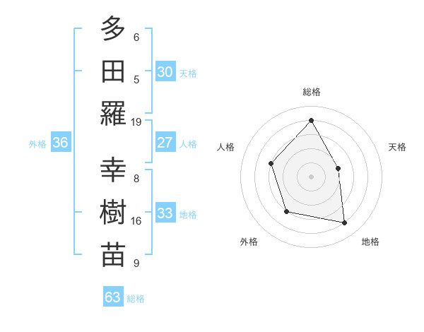 多田羅 幸樹苗さんを姓名の画数から五運を鑑定