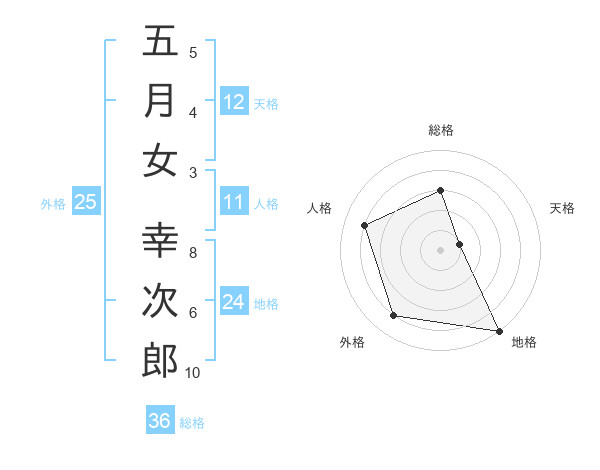 五月女 幸次郎さんを姓名の画数から五運を鑑定