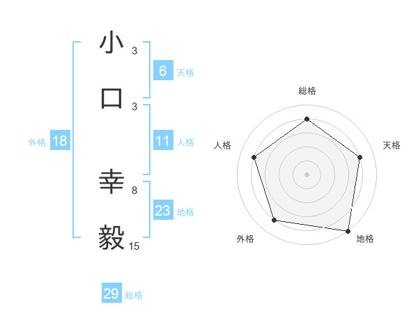 小口 幸毅さんの総格は29画の4点!