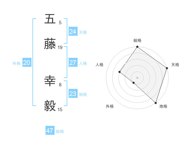 五藤 幸毅さんを姓名の画数から五運を鑑定
