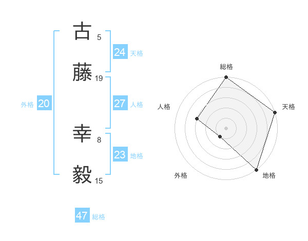 古藤 幸毅さんを姓名の画数から五運を鑑定