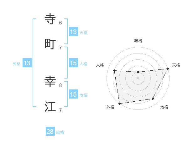 寺町 幸江さんの外格は13画の5点!