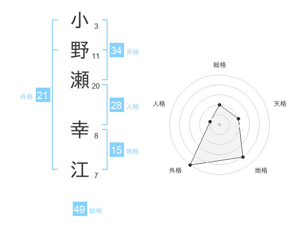 小野瀬 幸江さんを姓名の画数から五運を鑑定