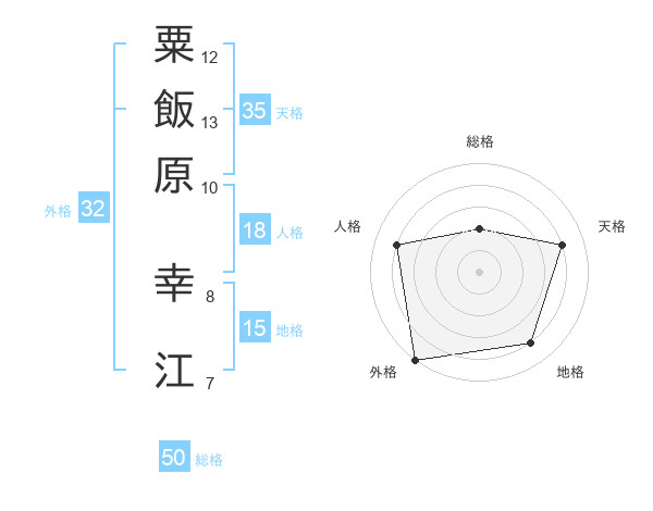 粟飯原 幸江さんを姓名の画数から五運を鑑定