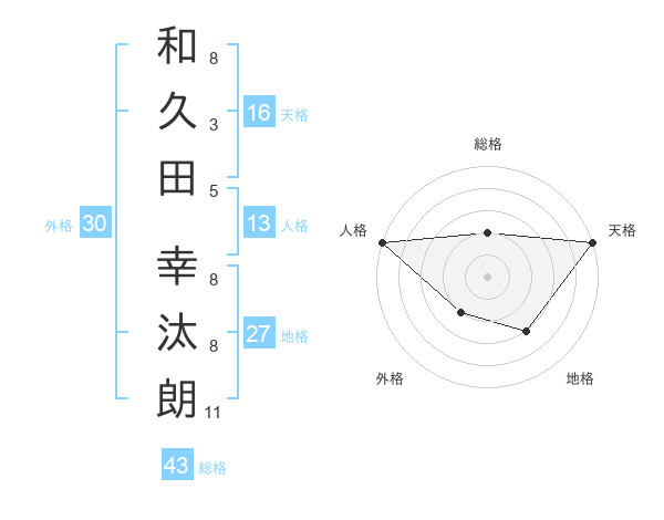 和久田 幸汰朗さんの天格は16画の5点!