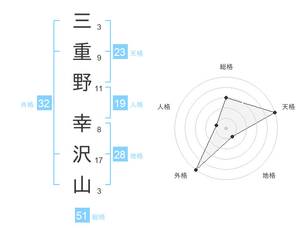 三重野 幸沢山さんを姓名の画数から五運を鑑定