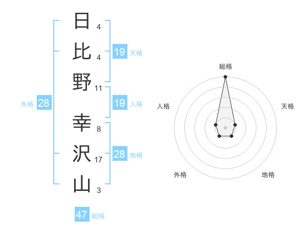 日比野 幸沢山さんを姓名の画数から五運を鑑定