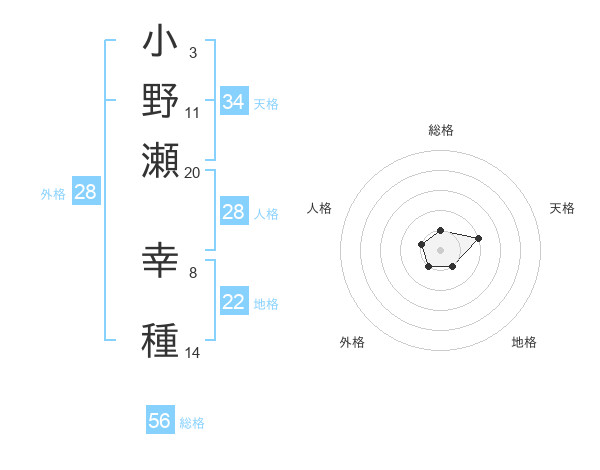 小野瀬 幸種さんを姓名の画数から五運を鑑定