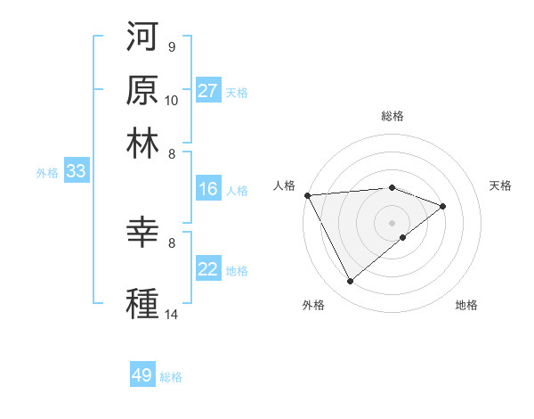 河原林 幸種さんを姓名の画数から五運を鑑定