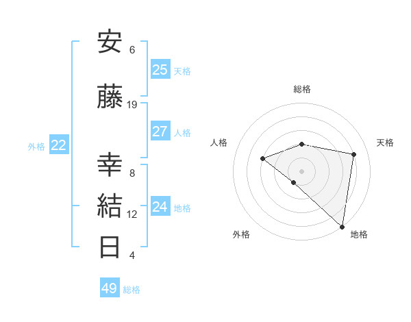 安藤 幸結日さんを姓名の画数から五運を鑑定