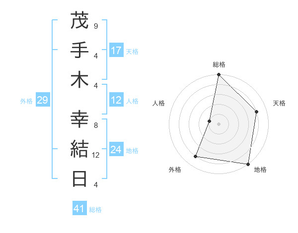 茂手木 幸結日さんを姓名の画数から五運を鑑定