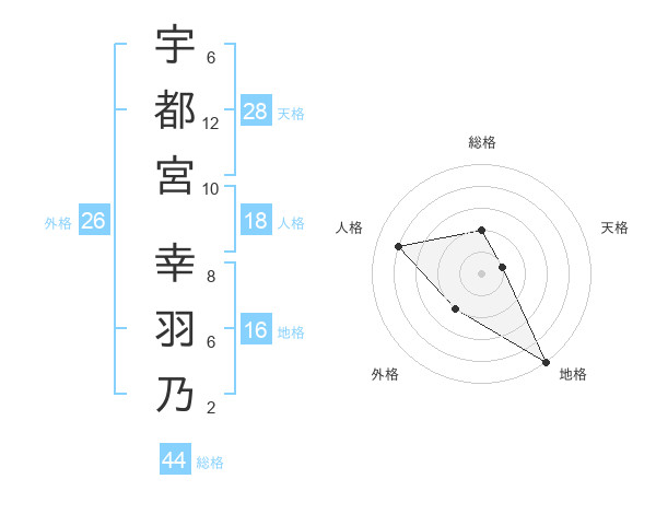 宇都宮 幸羽乃さんの総格は44画の2点!