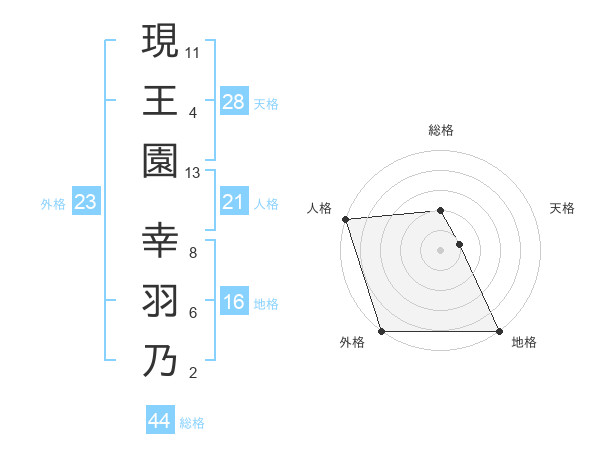 現王園 幸羽乃さんを姓名の画数から五運を鑑定