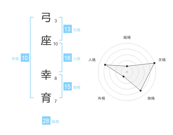 弓座 幸育さんの総格は28画の1点!