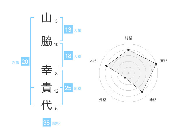 山脇 幸貴代さんを姓名の画数から五運を鑑定